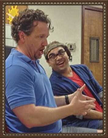 PAUL PANICO AS HUCKLEBEE AND ROBERT WEIBEZAHL AS BELLOMY REHEARSE THE FATHERS' FIRST DUET NEVER SAY NO